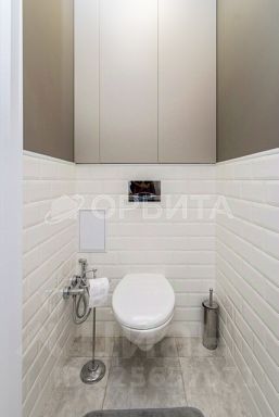 Стильный санузел с керамогранитом и современное покрытие пола;