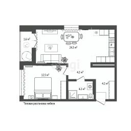 Просторная квартира формата 1+ с тщательно продуманной свободной планировкой расположена в престижном микрорайоне "Европейский".
