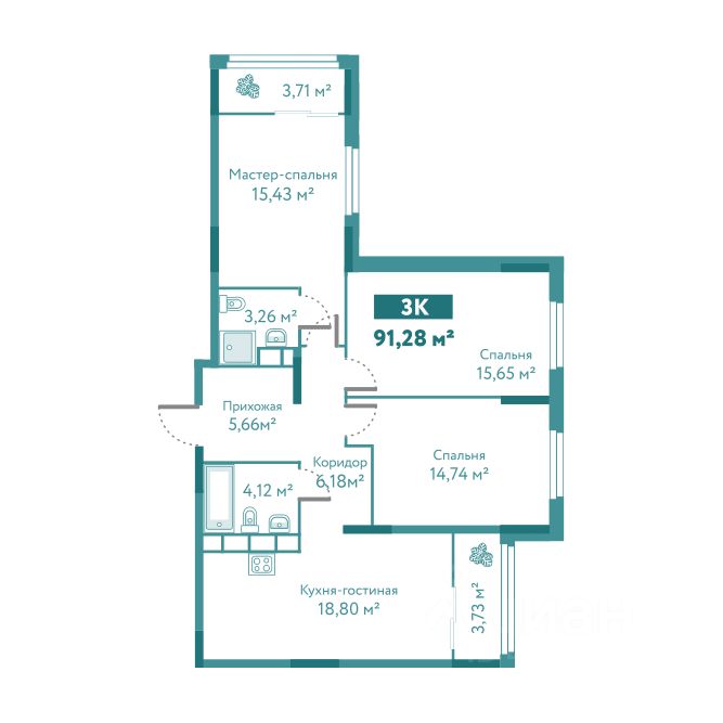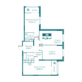 Общая площадь91,28 м²