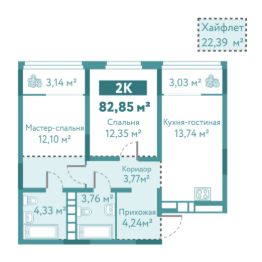 Общая площадь82,82 м²