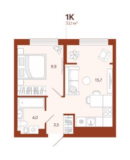 Общая площадь33,09 м²