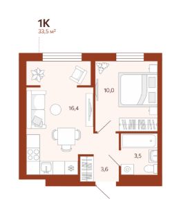 Продается 1-комн. квартира, 33,47 м²