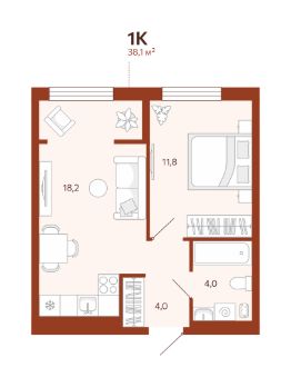 Продается 1-комн. квартира, 38,05 м²