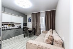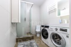 При продаже остается кухонный гарнитур, варочная поверхность, встроенная микроволновая печь, комод, навесная тумба, кондиционер, стиральная машина, зеркало с подсветкой, полотенцесушитель, встроенный шкаф в прихожей, обувница, зеркало.