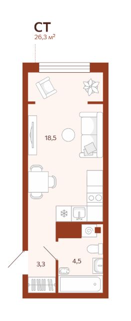Общая площадь26,28 м²