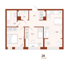 Продается 2-комн. квартира, 55,81 м²