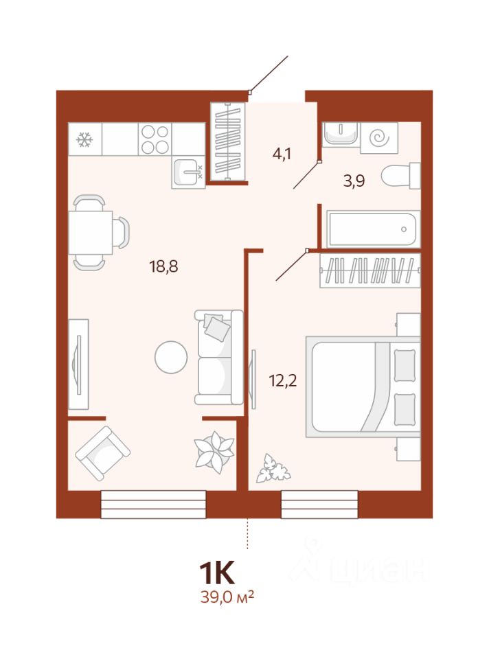 Общая площадь39 м²