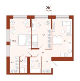 Продается 2-комн. квартира, 65,98 м²