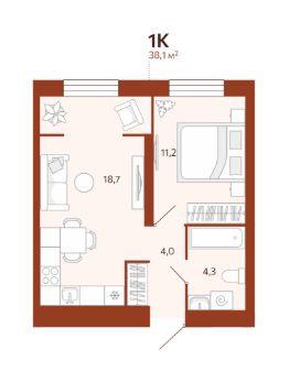 Продается 1-комн. квартира, 38,14 м²