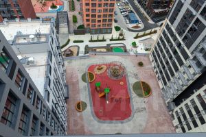 В самом квартале разделили зоны для активного и спокойного отдыха: дворовое пространство и бульвар предназначены для игр самых маленьких детей и семейных прогулок. Площадка для командных видов спорта и собственный скейт-парк вынесены за основную территорию жилого комплекса на гостевой . Благодаря такому зонированию дворы остаются тихими и уютными.
