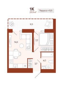 Общая площадь29,88 м²