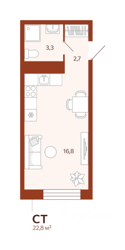 Продаётся студия в строящемся доме (ГП-2 (Новаторов, 30)), срок сдачи: II-кв. 2026, общей площадью 22.82 кв.м., на 8 этаже. Новый жилой комплекс "Новатор" от застройщика ГК "СБК" расположен по адресу: г. Тюмень по ул. Новаторов.