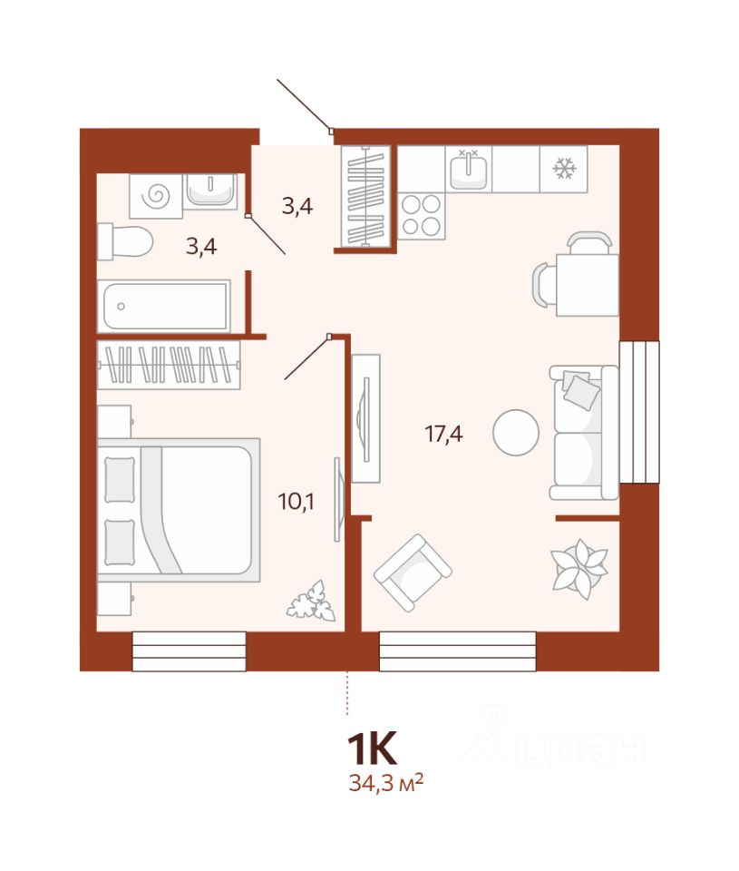 Продаётся 1-комнатная квартира в строящемся доме (ГП-2 (Новаторов, 30)), срок сдачи: II-кв. 2026, общей площадью 34.3 кв.м., на 5 этаже. Новый жилой комплекс "Новатор" от застройщика ГК "СБК" расположен по адресу: г. Тюмень по ул. Новаторов.