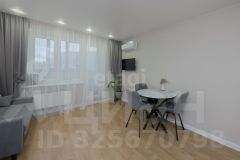 В квартире сделан качественный современный ремонт: натяжные потолки, на полу ламинат, керамогранит, обои.