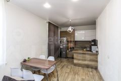 Квартира выполнена в современном стиле в натуральных оттенках. В санузле — стильная плитка по периметру и качественный санфаянс. При продаже в квартире остается вся необходимая мебель и техника.