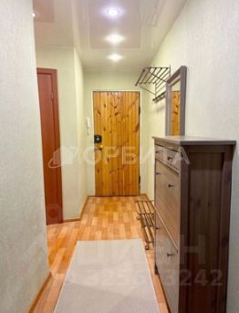 Потолок в квартире натяжной, стены выровнены, санузел облицован кафелем, пол покрыт линолеумом. Входная дверь двойная, железная.
