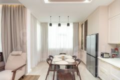 Квартира на 12 этаже в жилом комплексе "Европейский берег" , площадью 116 кв. м с учетом просторной лоджии, предлагает продуманное пространство формата 3+ с дизайнерским ремонтом, в основе которого — экологичность и безопасность. Применены европейские материалы, обеспечивающие здоровый микроклимат.