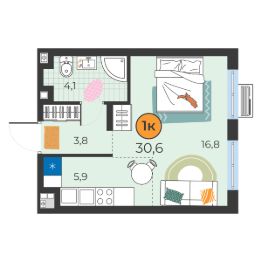 Общая площадь30,6 м²