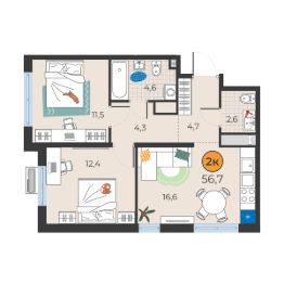 Общая площадь56,7 м²