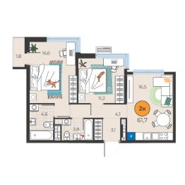 Продается 2-комн. квартира, 59,9 м²