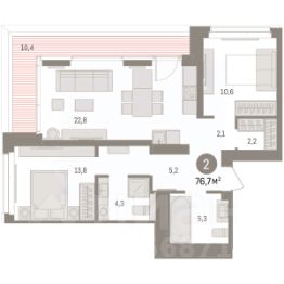Квартира с кухней-гостиной и двумя спальнями в кварталах "На Минской". Особенности планировки: предчистовая отделка, разнесённые спальни.