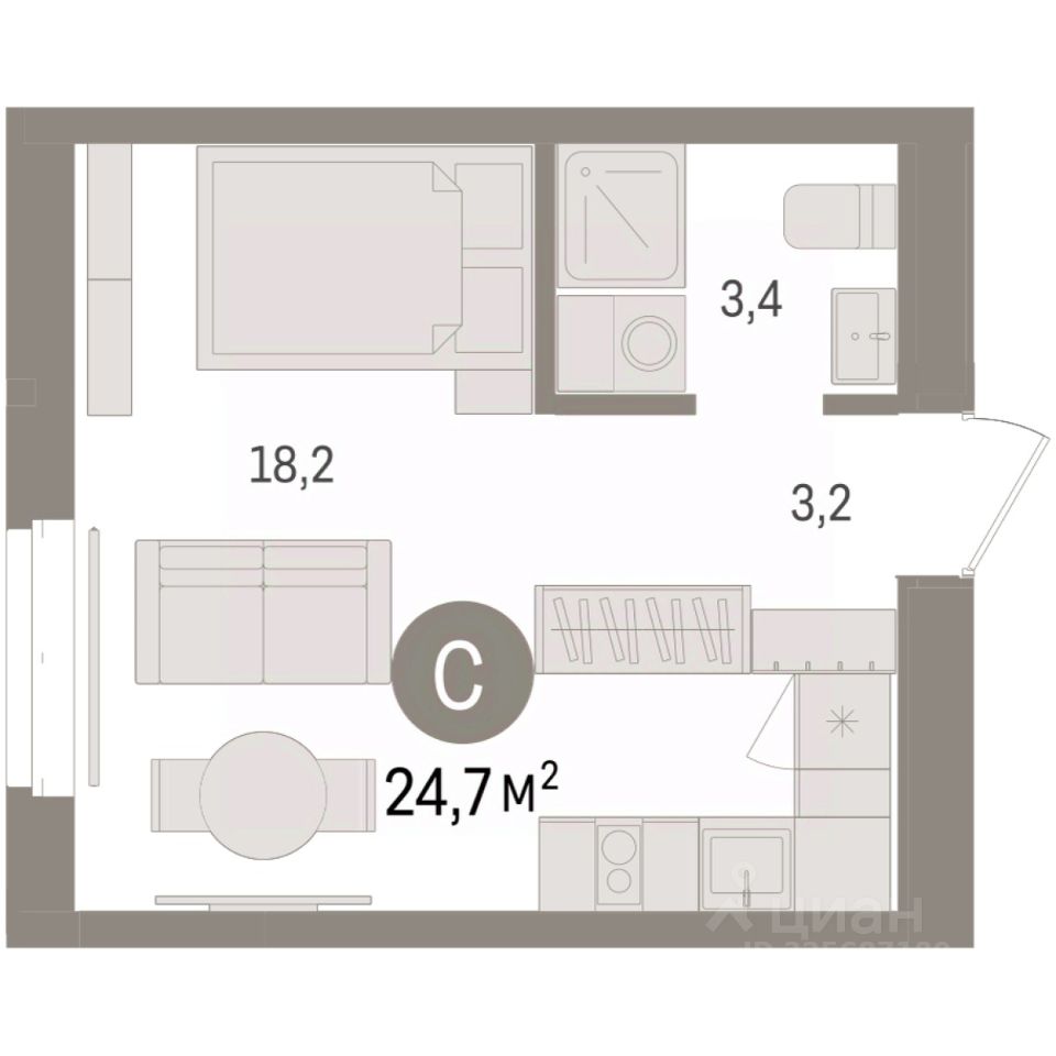 Продается 1-комн. студия с предчистовой отделкой в Кварталы "На Минской" на 4 этаже. Общая площадь: 24.67 кв.м., площадь гостиной 18.2 кв.м., из которых 5 кв.м. выделено под кухонную зону. Все окна выходят на одну сторону. В квартире один совмещенный санузел. Высота потолков 2.7 м.