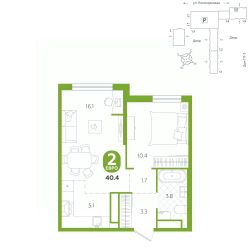 площадь квартиры - 40,4 кв.мГармоничные пропорции и большие окна наполняют пространство светом, создавая уютную атмосферу. Умное зонирование позволяет удобно организовать как рабочую, так и жилую зоны, что особенно важно для современных жителей. Санузел спроектирован с учетом всех потребностей: здесь есть ванна и место для стиральной машины. Каждый метр квартиры используется с максимальной эффективностью, что делает эту планировку отличным выбором для тех, кто ценит комфорт и удобство.
