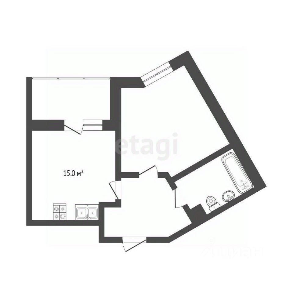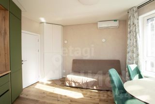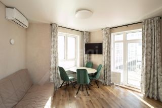 Планировка 1+ включает просторную кухню-гостиную и отдельную спальню. В квартире выполнен современный ремонт с использованием качественных материалов, вся мебель и бытовая техника остаются новым владельцам.
