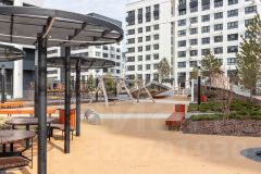 Двор вашего нового дома — это настоящий парк! Здесь проведено благоустройство, высажены деревья и кустарники, а также обустроены закрытая детская площадка из экологически чистых материалов и спортивная зона. Из окон квартиры открывается великолепный вид на пешеходный бульвар, где приятно проводить время.