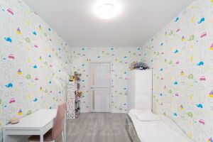В квартире выполнен современный ремонт: кварц винил, обои под покраску, натяжной потолок со встроенными светильниками, межкомнатные двери.