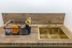 В этой студии продумано всё до мелочей: эстетика и удобство идут рука об руку. Кровать из натурального дерева не только обеспечивает здоровый сон, но и наполняет помещение тонким, успокаивающим ароматом леса. Очень удобная планировка включает выделенную зону кухни, позволяющую готовить и хранить продукты в специально отведенном месте, не нарушая приватности спальной зоны. При входе расположена большая гардеробная, предоставляющая ample пространство для хранения и идеального порядка.