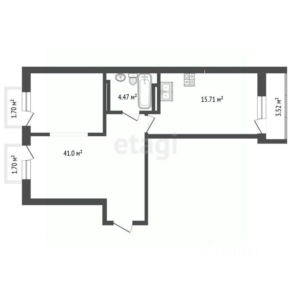 В квартире 2 французких балкона (в каждой спальне) и утеплённая лоджия в кухне-гостиной.