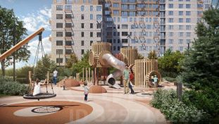 • Во дворах нет машин, шума, выхлопных газов и посторонних людей. Всё пространство разделено на зоны по интересам и возрастам. Для детей — игровые площадки из эко-материалов и мягкая защита от падений. Для взрослых — зоны отдыха, воркаут-площадки и тропинки для неспешных прогулок.
