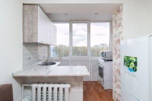 • На лоджии кухонный гарнитур, с мойкой, электроплитой. Пластиковые окна.