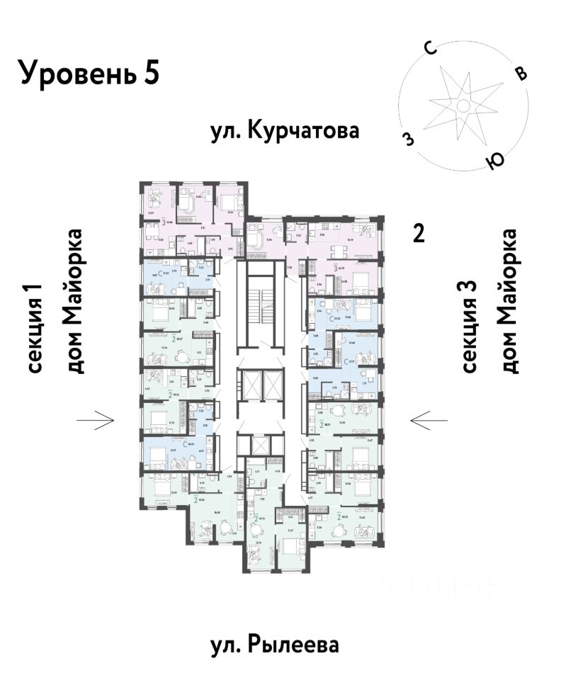 Развитое жилое пространство — закрытые дворы-сады, свои набережная и бульвар, торговая галерея на 1-м этаже, рядом детсады, школы и поликлиника.