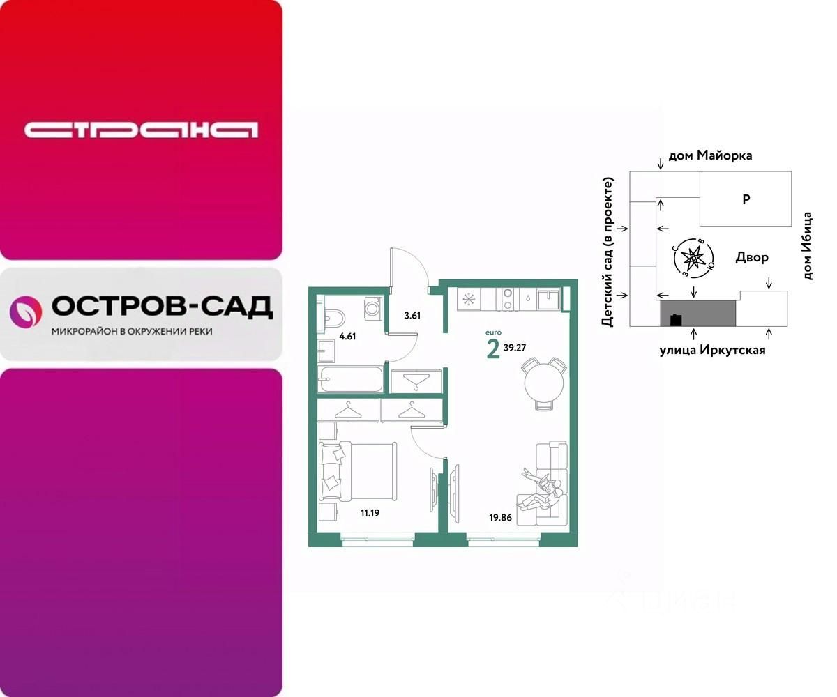 Продаётся 2-комнатная квартира в строящемся доме (Дом Тенерифе (ГП-2Я)), срок сдачи: IV-кв. 2027, общей площадью 39.27 кв.м., на 2 этаже. Новый жилой комплекс "Остров-сад" от Специализированного застройщика "Страна. Коммунистическая" расположен по адресу: г. Тюмень, по ул. Ярославская.