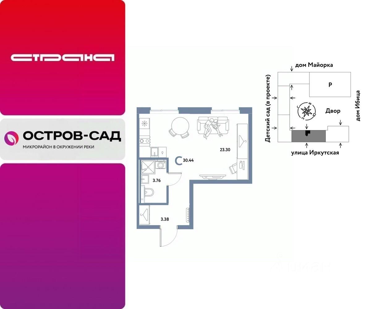 Продаётся студия в строящемся доме (Дом Тенерифе (ГП-2Я)), срок сдачи: IV-кв. 2027, общей площадью 30.44 кв.м., на 2 этаже. Новый жилой комплекс "Остров-сад" от Специализированного застройщика "Страна. Коммунистическая" расположен по адресу: г. Тюмень, по ул. Ярославская.