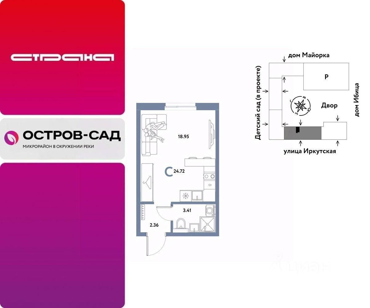 Продаётся студия в строящемся доме (Дом Тенерифе (ГП-2Я)), срок сдачи: IV-кв. 2027, общей площадью 24.72 кв.м., на 5 этаже. Новый жилой комплекс "Остров-сад" от Специализированного застройщика "Страна. Коммунистическая" расположен по адресу: г. Тюмень, по ул. Ярославская.