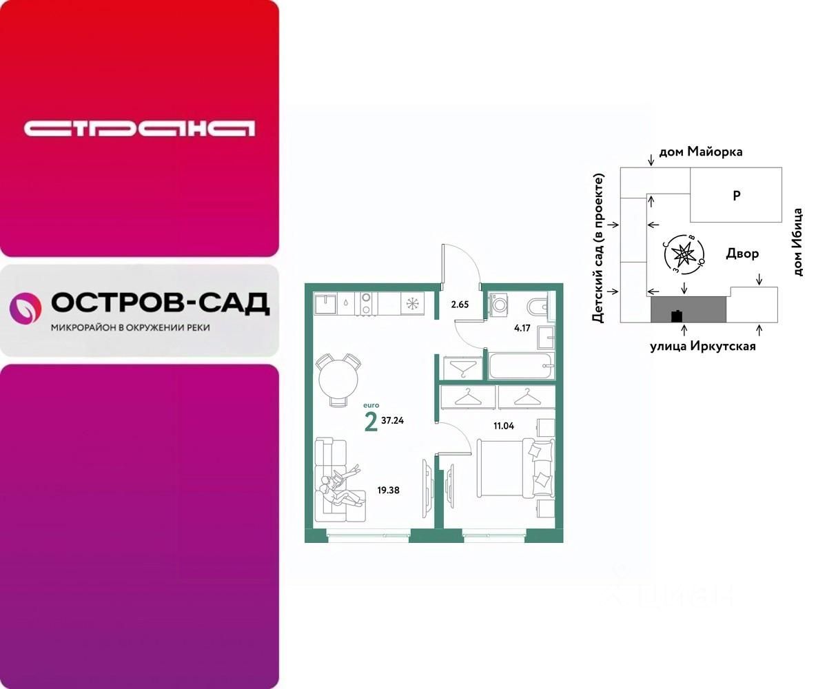 Продаётся 2-комнатная квартира в строящемся доме (Дом Тенерифе (ГП-2Я)), срок сдачи: IV-кв. 2027, общей площадью 37.24 кв.м., на 14 этаже. Новый жилой комплекс "Остров-сад" от Специализированного застройщика "Страна. Коммунистическая" расположен по адресу: г. Тюмень, по ул. Ярославская.