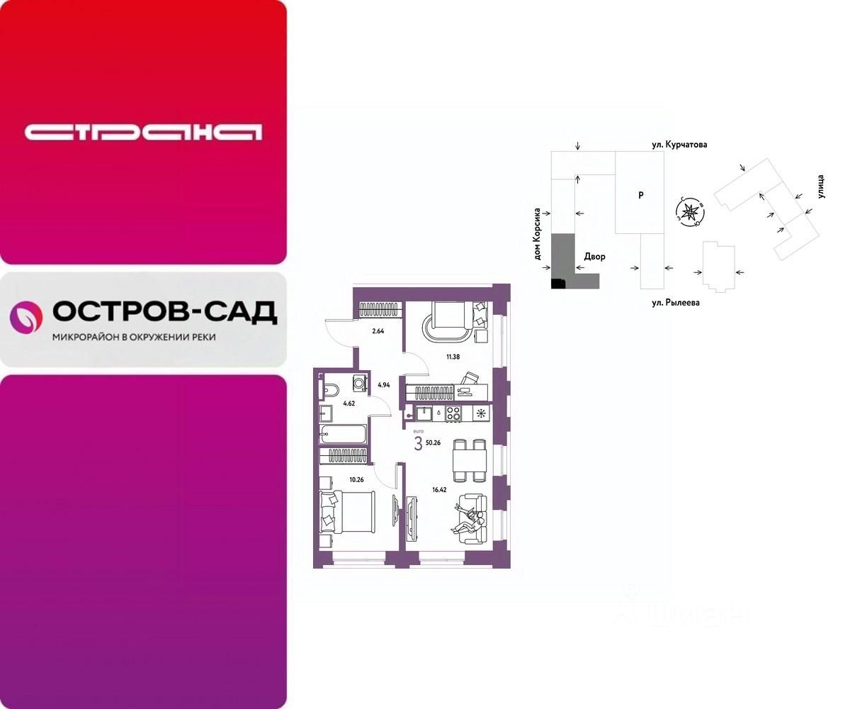 Продается 3комнатная квартира на 13 этаже от застройщика Страна Девелопмент. Площадь квартиры 50,26 кв. м.