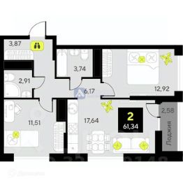 Продаётся прекрасная 2-комнатная квартира в новостройке на 3 этаже 16-этажного дома. Общая площадь 61.34 кв.м., кухня 17.64 кв.м. Этот модный и презентабельный вариант идеально подойдет как для проживания семьи с детьми, так и для инвестиций в недвижимость.