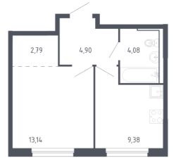 В продаже 1-комнатная квартира в корпусе 1.3 ЖК 'Чаркова 72'. Квартира располагается на 3 этаже, общая площадь 34.29 м2.