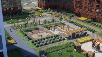 Для детей разного возраста двор разбит на секции по интересам. Это целый детский городок, отвечающим последним техническим требованиям и современным трендам.