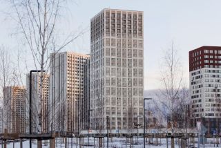 Дом из 25 этажей со встроенным паркингом и эксплуатируемой кровлей. На уровне второго этажа кровля паркинга благоустроена для прогулок с детьми и занятий спортом.