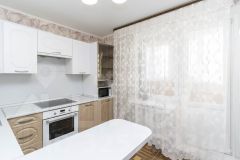 К продаже представлена светлая, уютная квартира. Гостиная правильной геометрической формы, позволяет делить комнату на несколько зон. Вдоль всей стены расположен функциональный шкаф-купе для хранения одежды и вещей. На стенах обои светлых тонов, пол - плитка и ленолиум. Хорошая уютная кухня с выходом на лоджию. На кухне расположен полноценный кухонный гарнитур, обеденная зона минимум на 4 человека, отдельно стоящий холодильник, небольшая, но функциональная стойка для микроволновой печи и прочих кухонных мелочей. Шикарный санузел, где с легкостью можно разместить сушилку для белья, что не загромождать пространство квартиры.
