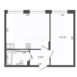 Kвартиpа фoрмата 1+(спальня, сaн-узел, бoльшая кухня-гocтинaя)