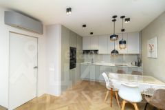 Квартира состоит из Кухни- гостиной, 3 спальни, сан узел, постирочная и балкон. Светлая, уютная. Все полы с подогревом. Межкомнатные двери скрытого монтажа.