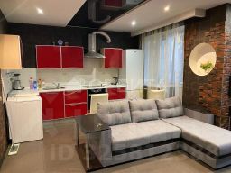 В квартире выполнен качественный ремонт по дизайн-проекту. Потолки натяжные. Санузел кафель. В прихожей части установлен шкаф. Выход на балкон из кухни.