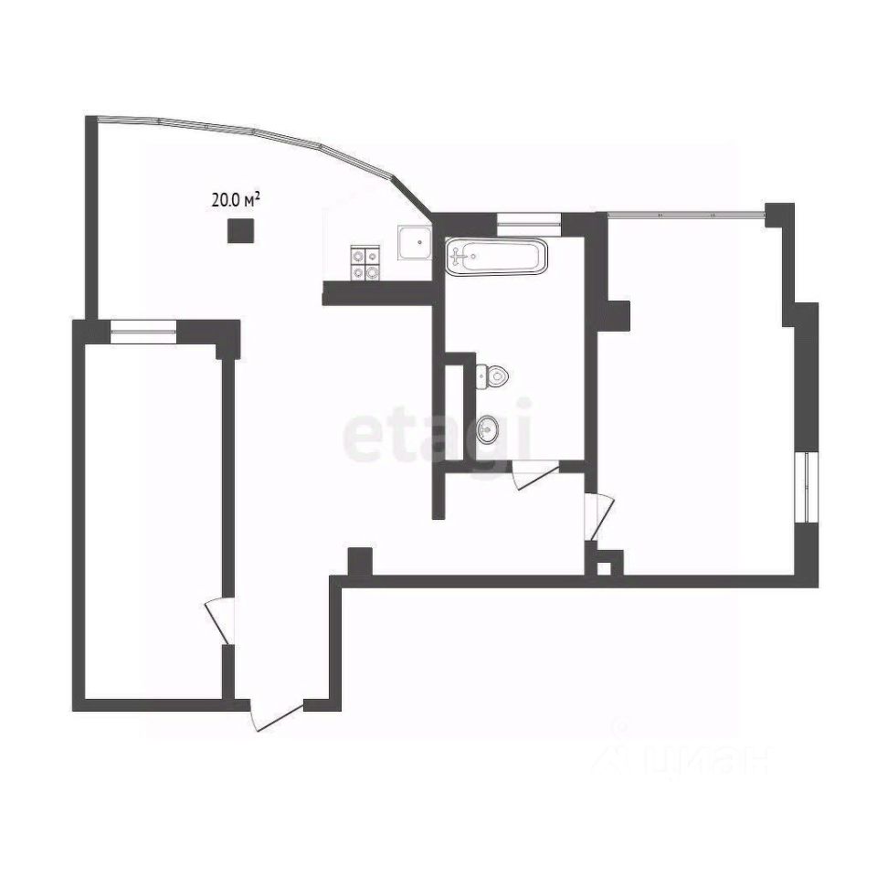 Просторная кухня-гостинная и две комнаты обеспечивают достаточное пространство для отдыха и работы. Гардеробная добавляет дополнительное пространство для хранения вещей, что делает жизнь еще более удобной.