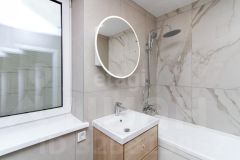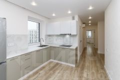 В квартире выполнен современный ремонт, на полу ламинат, потолки натяжные, стены одеты в обои под покраску. Сан узел совмещён, отделан кафельной плиткой.